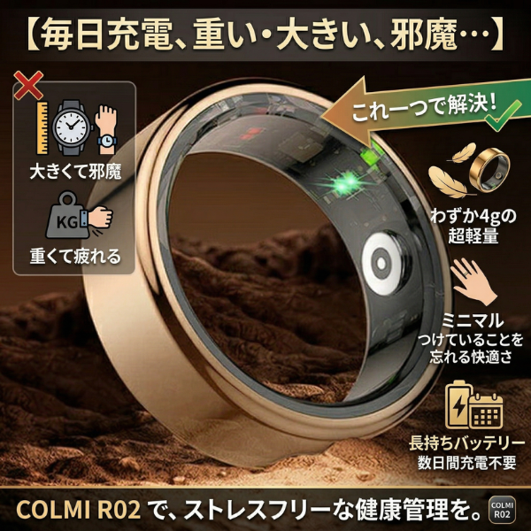 【2026年最新進化版】指輪で始める、24時間スマートな健康管理。超軽量 スマートリング「COLMI R02」 睡眠モニタリング 運動記録 心拍計 IP68防水 毎日のコンディション管理 男女兼用 ギフト